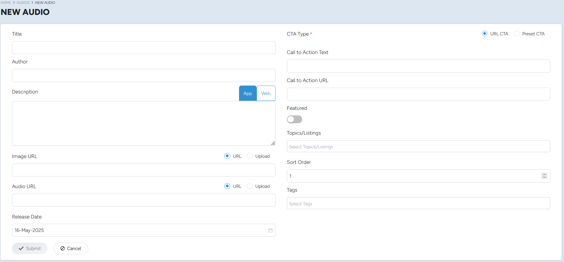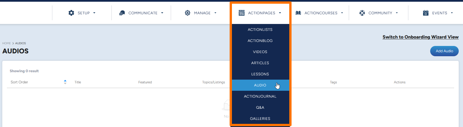 Audio action pages are designed for when you want standalone audio content similar to podcasts, but as standalone content sections.