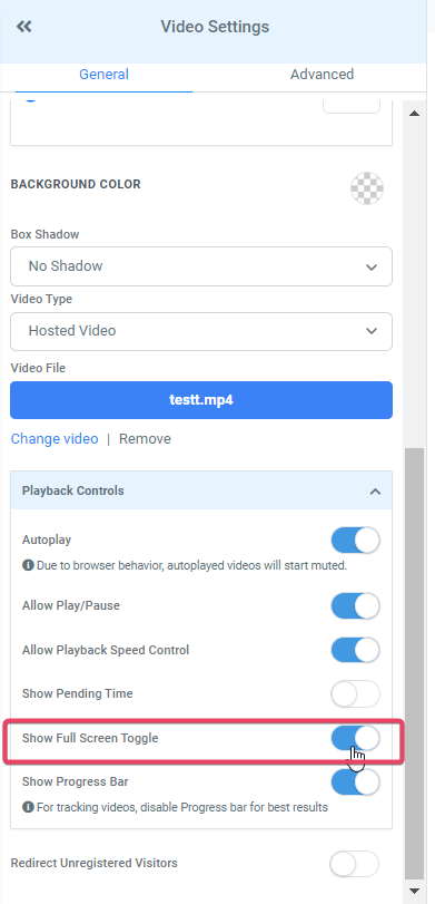 - What do each of the toggles in the Hosted Video Element settings > Playback Controls do?