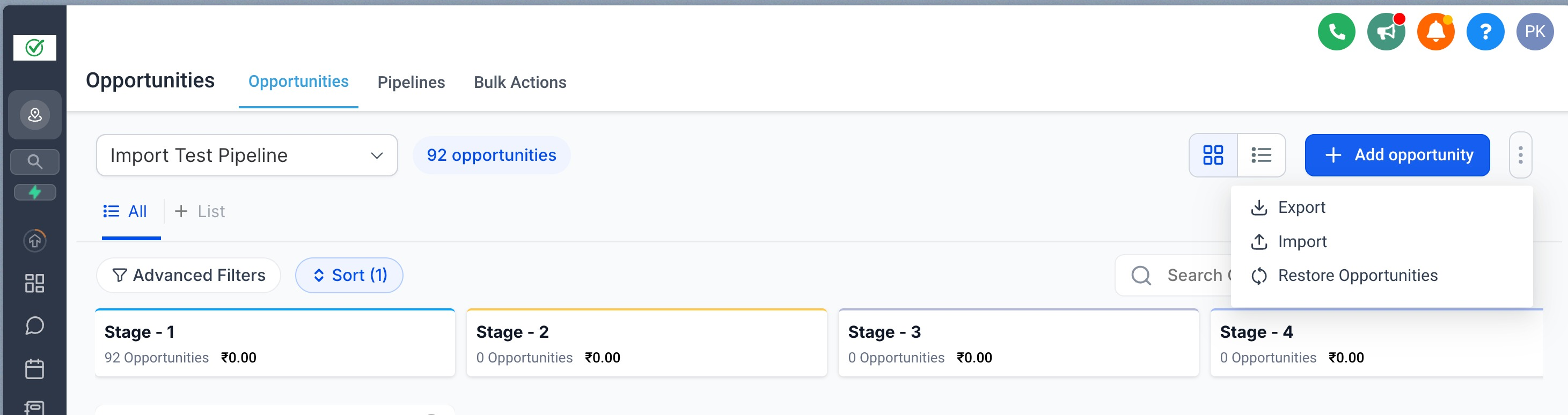 - Both contacts and opportunities imports will appear in the same place under Bulk Actions.