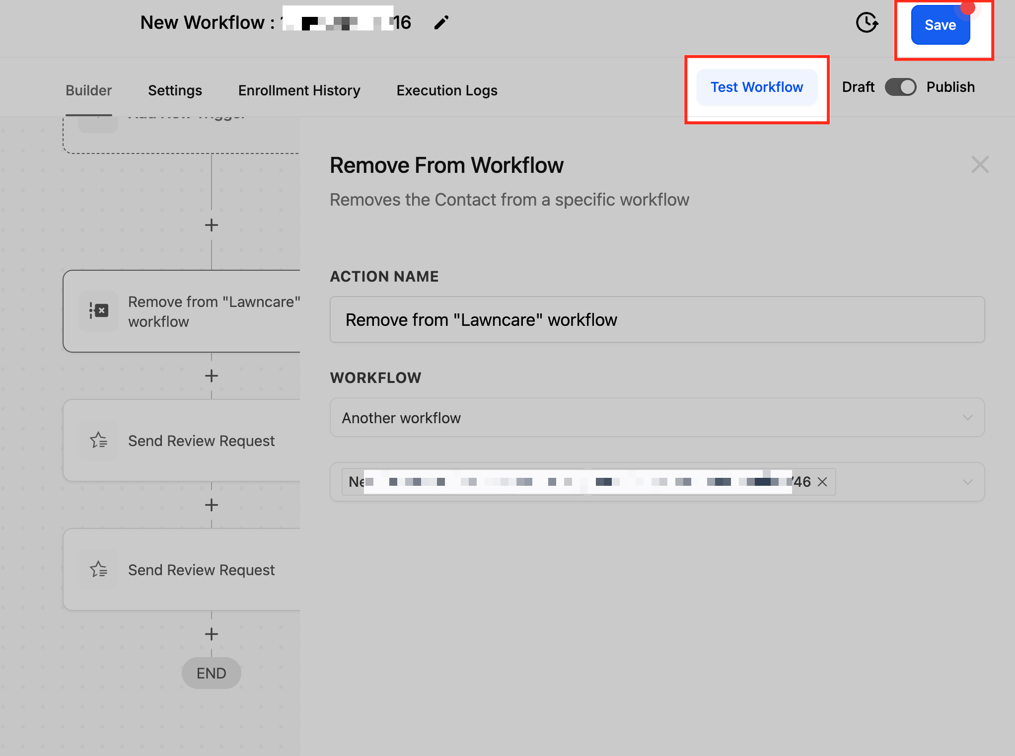 After you have added the triggers and actions, be sure to click "Save" button. Before you publish the workflow, you can test it with the help of "Test Workflow" button.