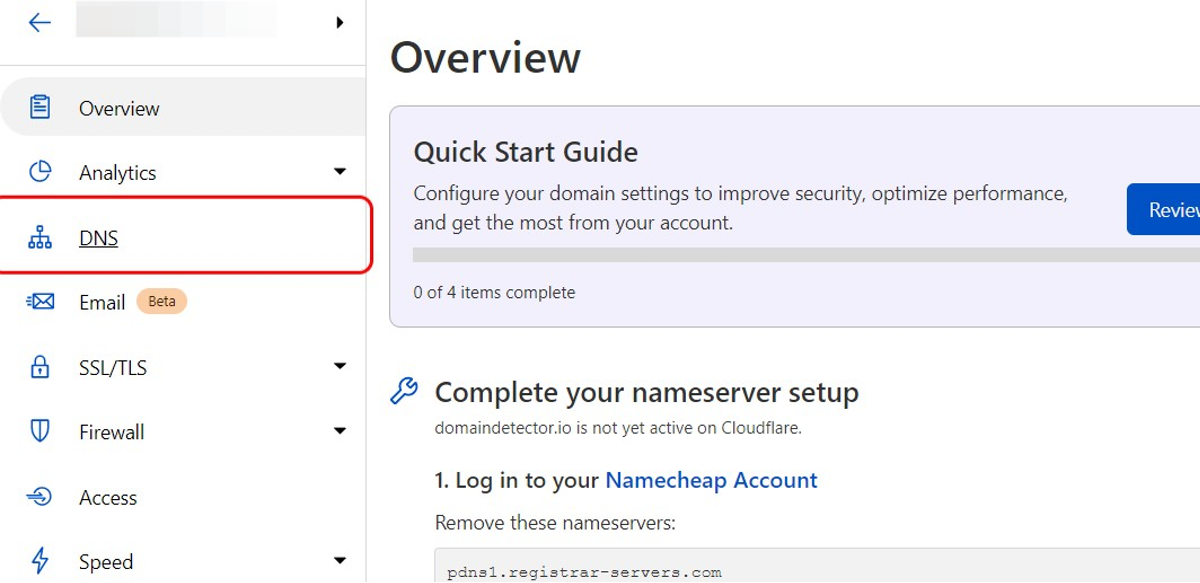 3. Click on DNS tab within the left menu