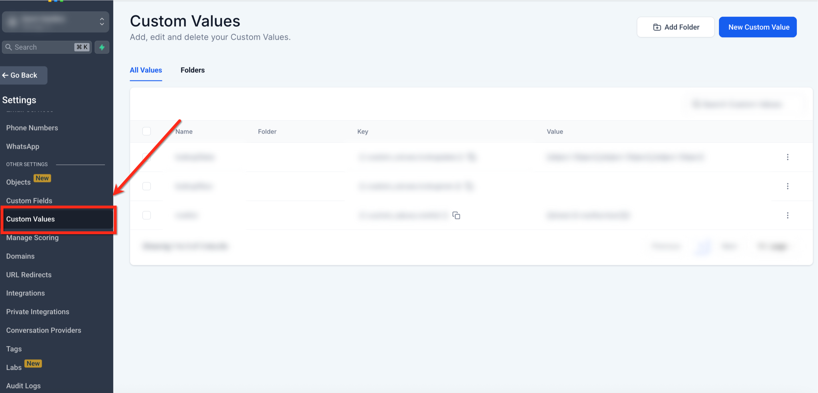 Managing Custom Values is essential for maintaining consistent, reusable content throughout funnels, forms, emails, and automations. Here's how you can create, update, or remove Custom Values.