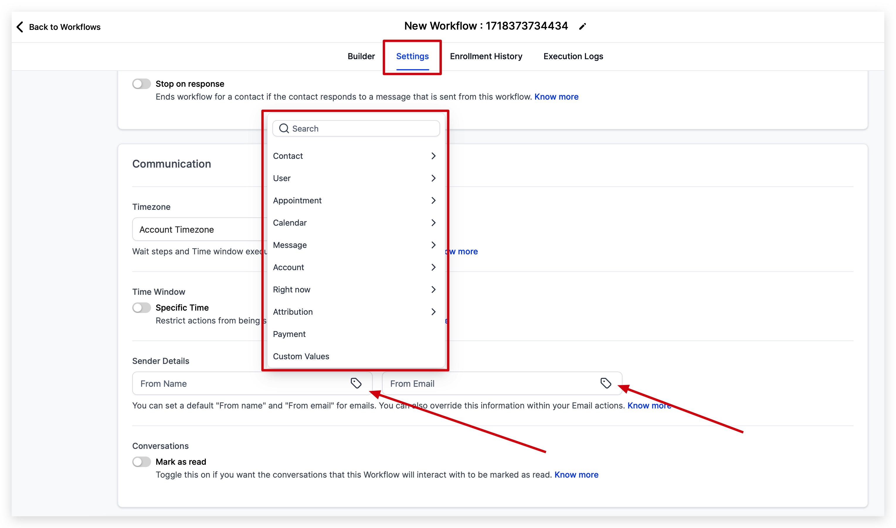 - While building workflows, you can add custom values in so many places to help personalize your automation, messaging, and notifications based on the custom values being added.
