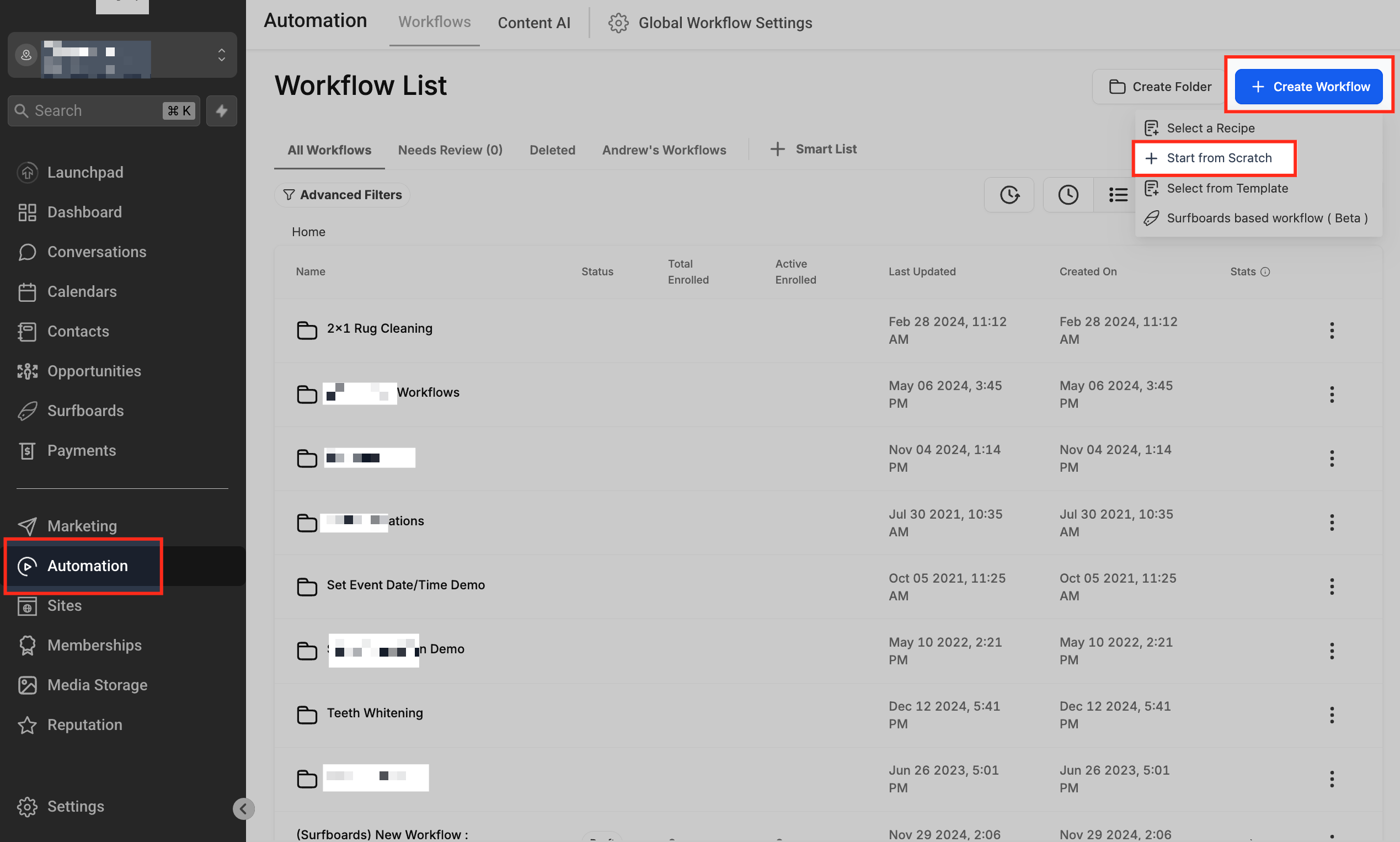 Navigate to Automation in Actionera Marketing Portal. Select Workflows and either create a new workflow or open an existing one.