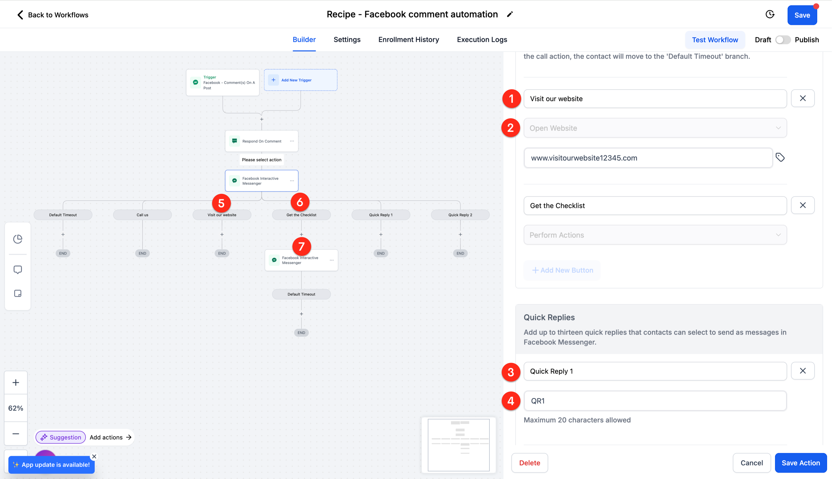 - Quick Reply: label in the workflow.