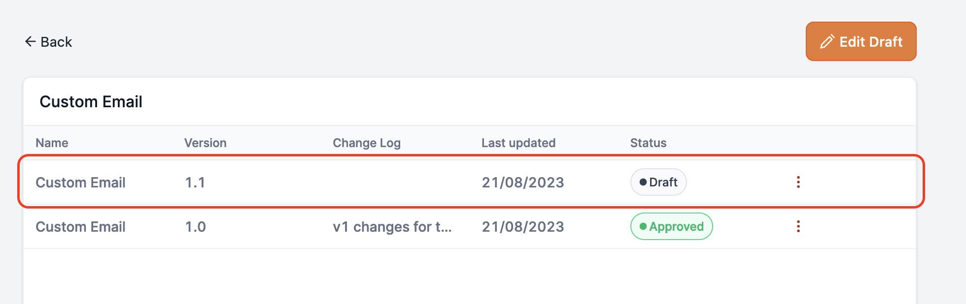 On clicking + New Version It will create a new draft version with all the previously published data prefilled.