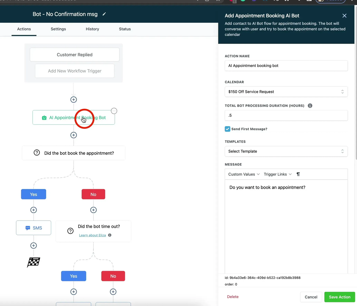 2. Select the AI appointment bot in the workflow options