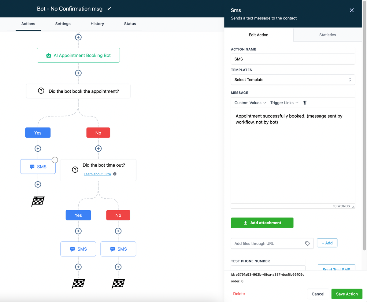 5. Create a message or any action for the appointment booked condition