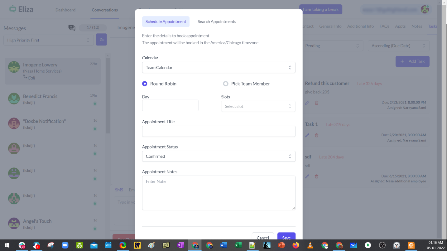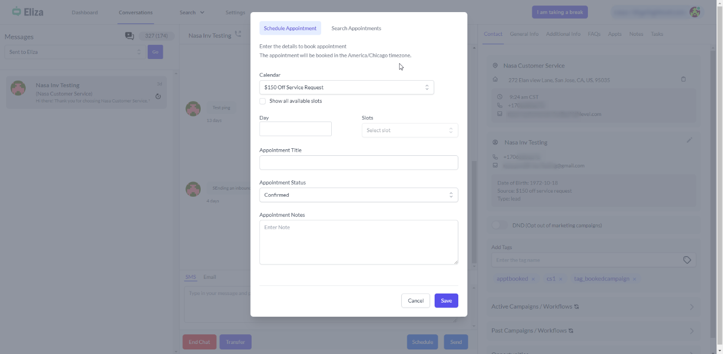 For scheduling an appointment, the agent can directly choose the calendar, date, and time slot to book the appointment.