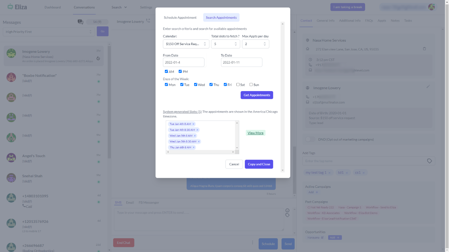 The agent can search for the available slots on this screen if the contact gives a broad range of options.