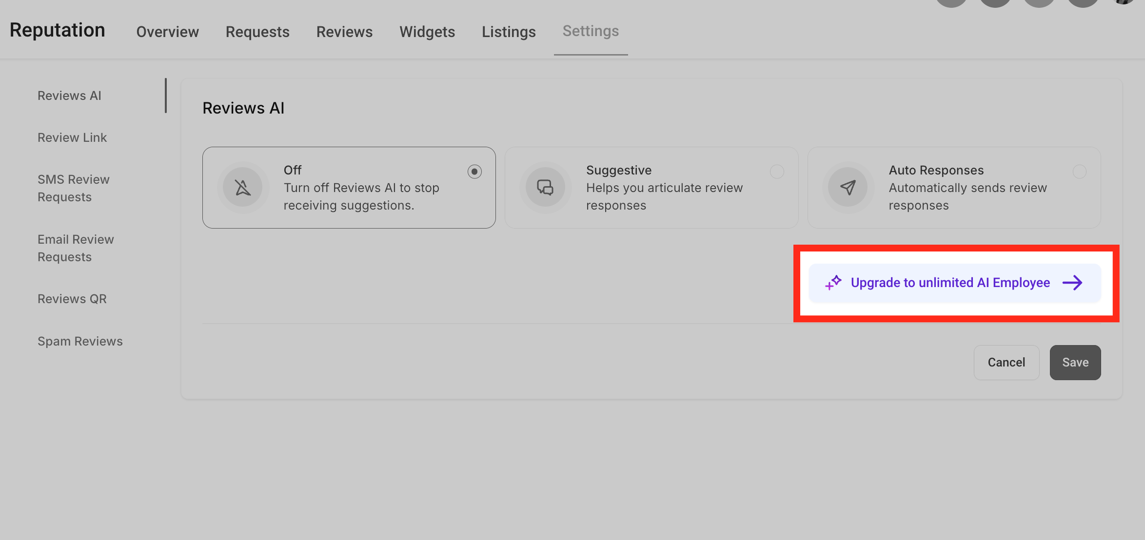 In this example, we will see how your customer can see your Unlimited monthly offer when they are inside "Reviews AI" section. Below are the steps you can follow.