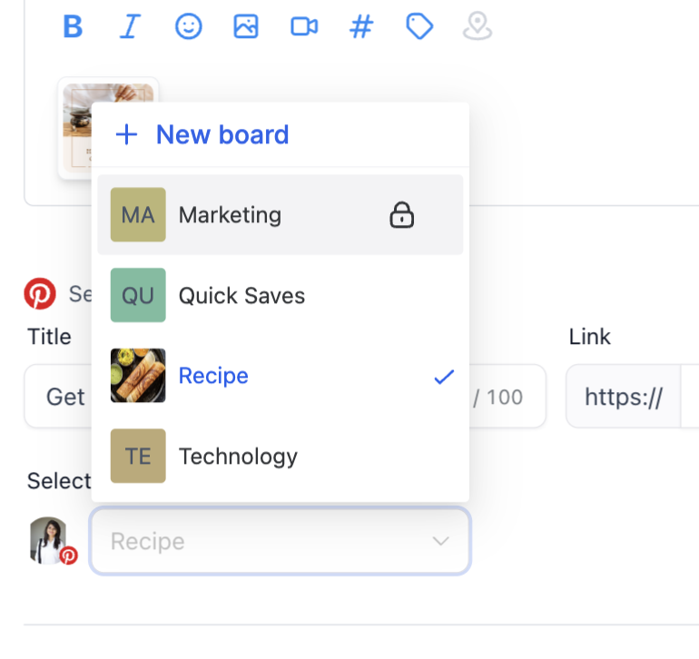 - If you do not have any boards, you can create one using the "Add board" option in the board selection dropdown.