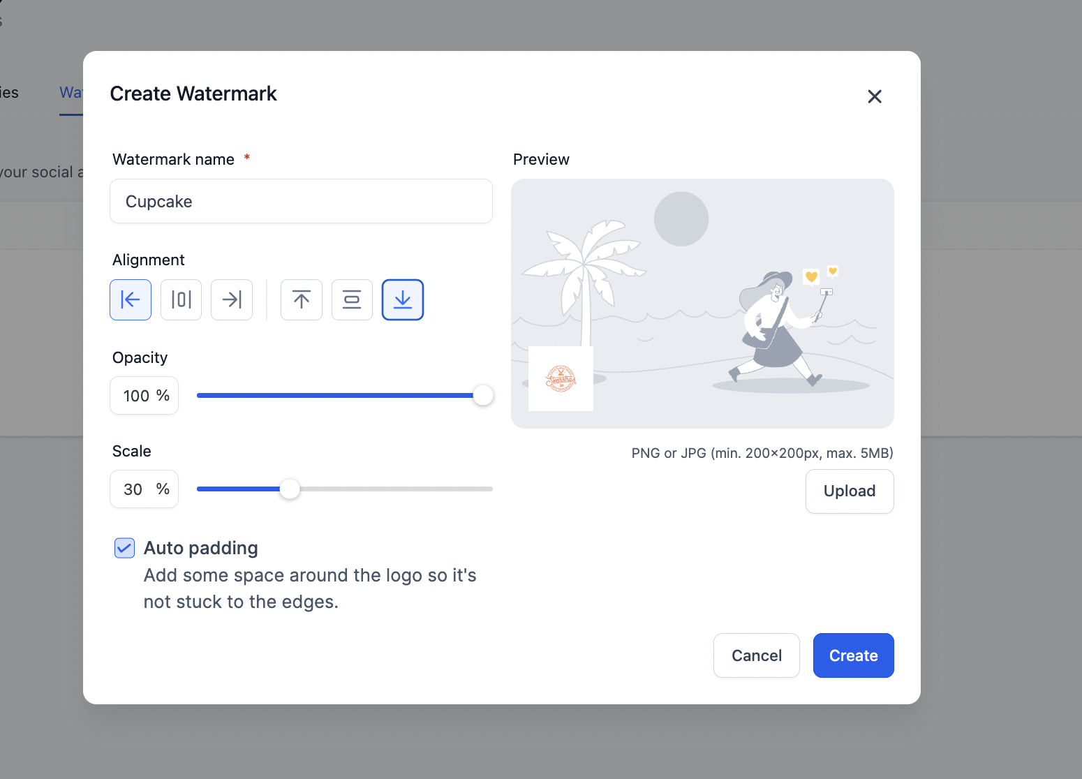 Note - Watermark will be added for all the socials. Watermark was added on images/videos. We today only support one watermark.
