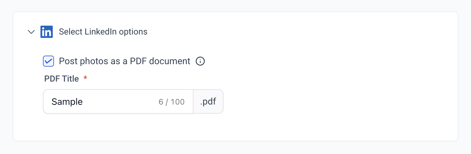 6. Upload one or more PDFs for LinkedIn carousel or import photos to post as a PDF on LinkedIn