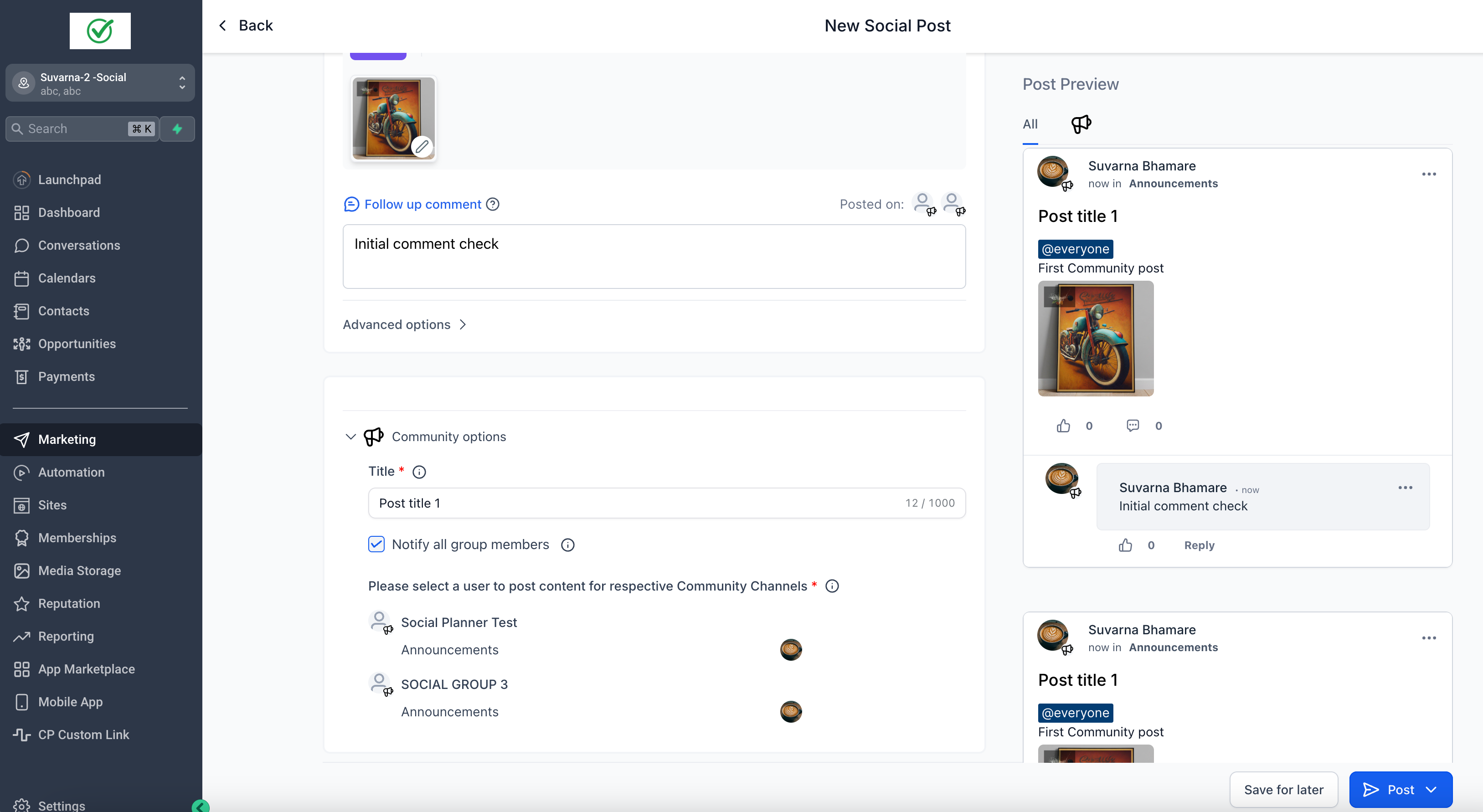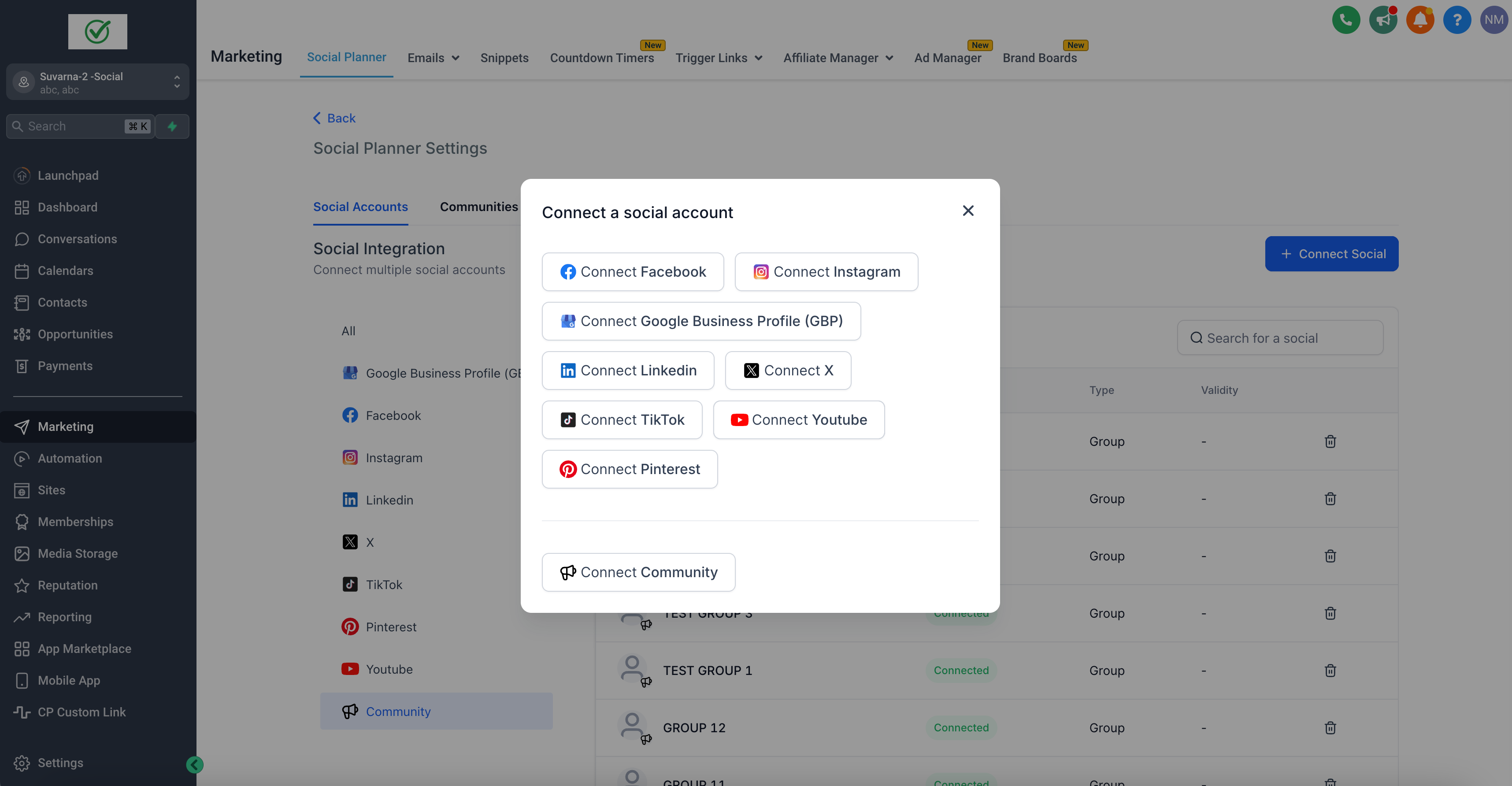 Note - Community will only be connected from the respective sub-account inside the Social Planner.