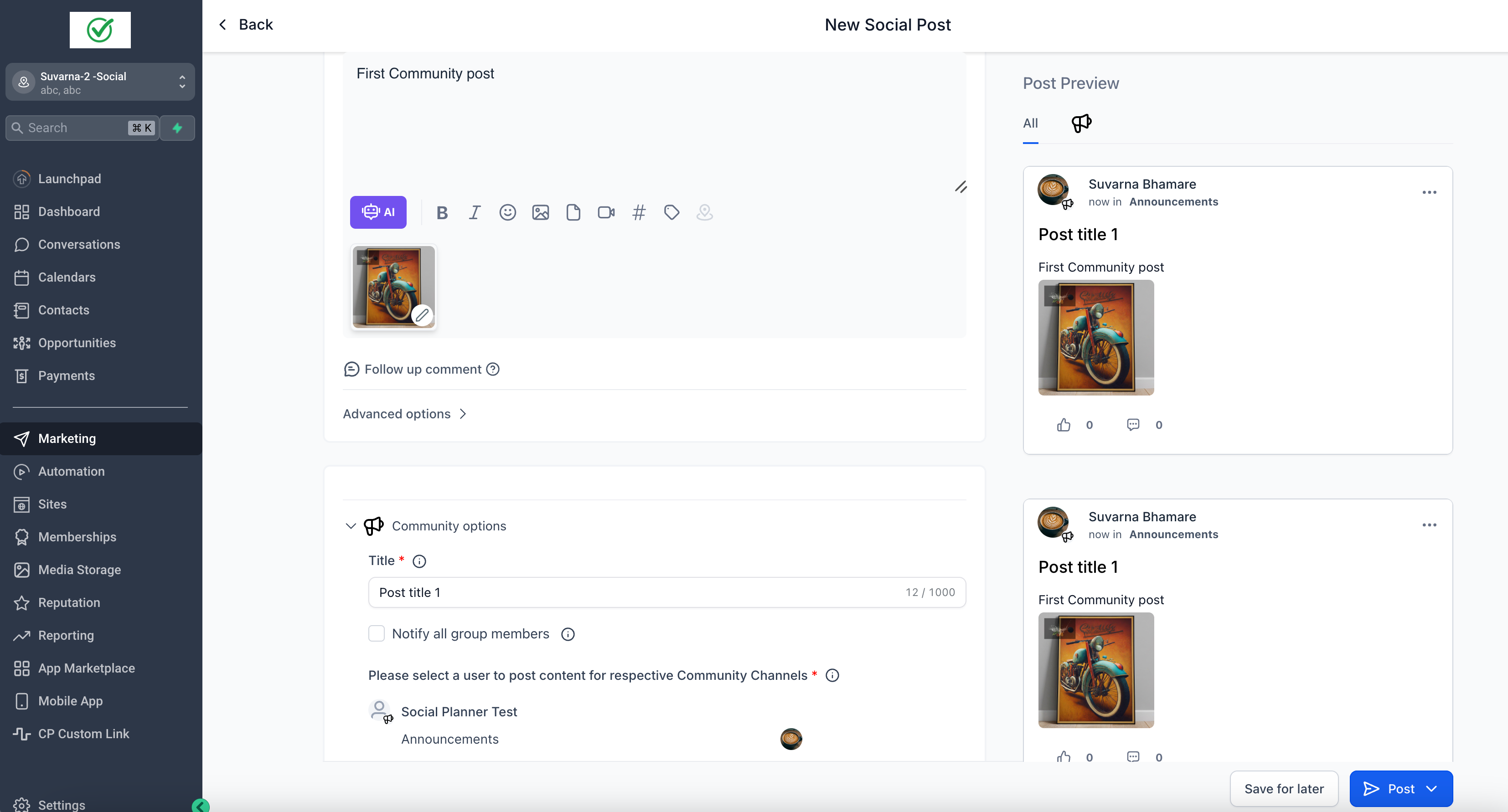 - Scheduled Posting: Plan and schedule your content in advance, ensuring posts go live at the optimal time for each community. This helps maintain engagement and ensures your message reaches members at the best times.