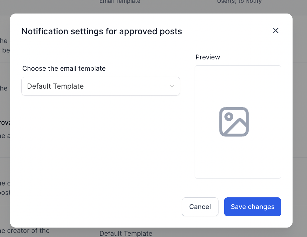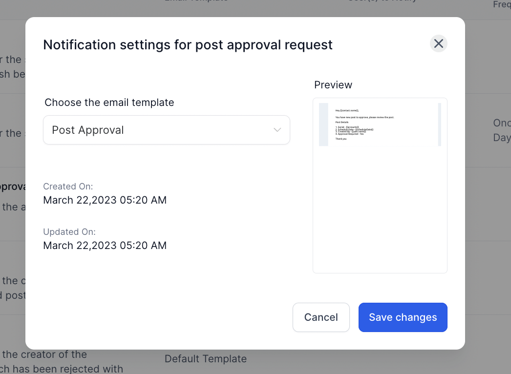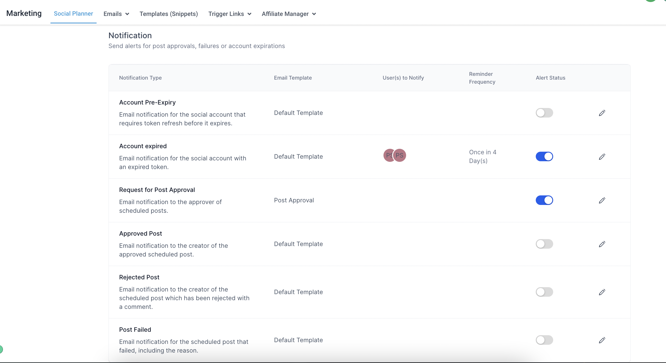 - To edit the email notification request for approval of scheduled post by clicking the pencil icon