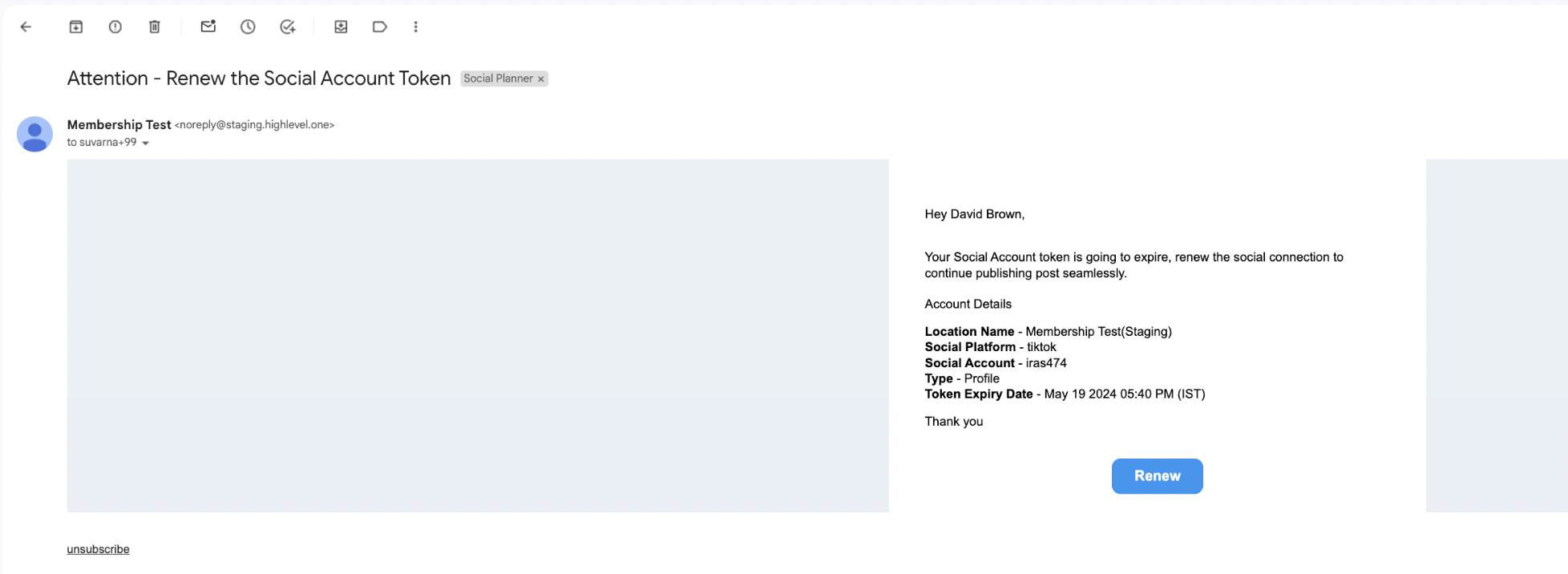 Pre expiry email notification will trigger if it is enabled when the social account like Facebook page token expires in 90 days away and on 80th day the notification will get triggered.